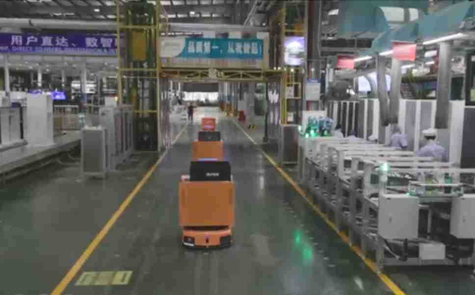 为车载冰箱物流配送打造的智能解决方案,,,,包含产中物流通过潜伏举升AMR搬运至线边,,,,产后成品物流智能仓储,,流程包含产中物流智能齐套入库,,,,线边安灯叫料AMR智能配送至线边,,,成品入库、、、、出库,,,通过无人堆高车机器人,,,,智能仓储管理替代人工作业管理,,,实现更高存储、、、、更高效率、、更具柔性化的解决方案。。
